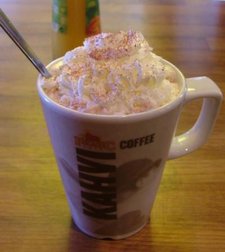 Cream produced by cattle (particularly Jersey cattle) grazing on natural pasture often contains some natural carotenoid pigments derived from the plants they eat; this gives the cream a slight yellow tone, whence the name of the yellowish-white colour cream. Cream from cows fed indoors, on grain or grain-based pellets, is white. In the US, cream is usually sold as: Half-and-half (12% fat) Whipping cream and whipped cream (30%) Heavy cream, or heavy whipping cream (36%) Manufacturer's cream (40%), mostly available from food-services supply wholesalers rather than groceries Also common in the US is sour cream, which is cream that has been subjected to a bacterial culture that produces lactic acid, producing a sour taste, and that thickens the cream as well. Half cream (12%) Single cream or Light cream (18%) Whipping cream (35%) Double cream (48%) In the UK, clotted cream is a very high fat (55%) product processed with heat.